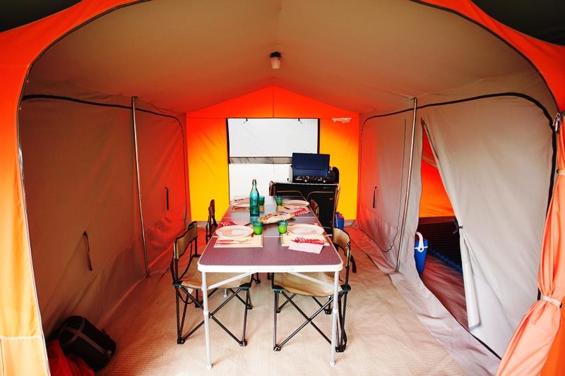 – De huur van een tent uitgerust voor maximaal 4 personen